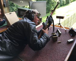 Wie meistens begann der erfahrenste von uns Schützen, Ernst, Punkt 14 Uhr mit seinem Programm. Er bevorzugte die beiden Stiche mit dem 100er-Programm, wobei ihm die Kunst besser gelang als der Militär. Er hatte, wie alle an diesem Nachmittag mit viel Lichtwechsel und mehr oder weniger Windeinfluss zu kämpfen. Dann war bei gleichen, sich veränderten Verhältnissen, Willy an der Reihe. Der Kunst und der =Veteran= gelangen beide relativ gut, d.h. mit Kranzresultaten.