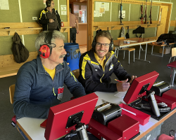 Das Feldschiessen mit der Pistole auf die Distanz 25m, mit 65 Teilnehmenden ebenfalls sehr gut besucht, konnte auf der Schiessanlage in Densbüren geschossen werden. Bei einem Maximum von 180 Punkten konnte sich ein Trio, bestehend aus Stefan Binder, Christoph Siegenthaler und Kai Herzog mit 175 geschossenen Punkten den Sieg teilen.