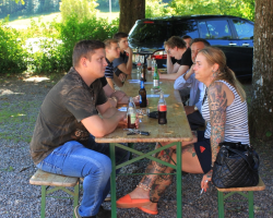 Nach dem Schiessen konnten die erzielten Resultate bei einem kühlenden Getränk oder einem feinen Steak in der eingerichteten Gartenwirtschaft vor dem Schützenhaus diskutiert werden, sei dies mit angehängtem Kranzabzeichen, oder händeringend nach Ausreden für das schlechte Abschneiden suchend. Aber alle waren sich einig, mitmachen kommt vor dem Rang!
