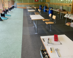 Die bestehenden Leitungen und Verbindungen zwischen Scheibenstand und Schützenhaus konnten weiterhin genutzt werden. Alles andere wurde aus- und abgebaut.