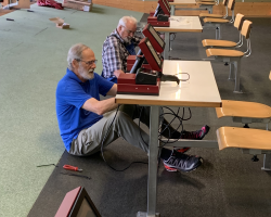 Anschliessend wurde unter fachlicher Leitung von Polytronic-Monteuren die neue Anlage installiert. Der Technologiesprung war kaum zu übersehen: Wo früher noch Platinen, Schaltungen und Drähte waren, hangen jetzt Netzwerkswitches und Computer.