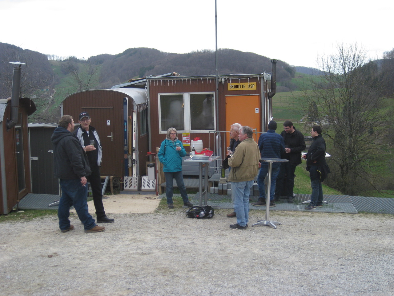 Vom Benkerjoch ging es gemütlich zu Fuss weiter über die Stockmatt Richtung Asp. Bei der Asper-Skihütte wurden wir bereits mit einem Apéro erwartet. Nachdem es draussen kühler wurde, begaben wir uns ihn die Skihütte und durften Raclette à discretion geniessen. Mit einem Dessert und Kaffee-Feusi fand der genussvolle Abend seinen Abschluss. Der anschliessende Fussmarsch nach Asp sorge dafür, dass wir wieder etwas durchlüften und unsere Sinne ordnen konnten.